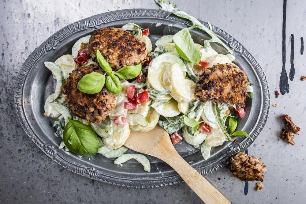 Veganer Kartoffelsalat mit Bohnenfrikadellen